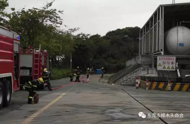 3月14日在东莞市嘉宝石油化工有限公司厂内,由此次实战演练负责人刘春明介绍公司的内部结构、消防设施、车间、仓库的位置和公司的消防布局,大队官兵根据实地情况和制定的演练预案,对企业内的消防安全重点部位进行了灭火救援实战演练。